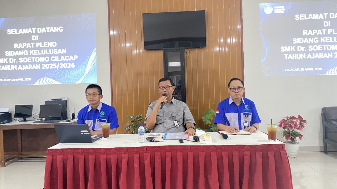 SMK Dr. Soetomo Cilacap menggelar sidang pleno untuk menetapkan kelulusan siswa kelas XII Tahun Ajaran 2025/2026 pada Kamis, 30 April 2026 pukul 13.30 WIB bertempat di ruang rapat sekolah. Kegiatan ini menjadi tahap akhir dalam menentukan kelulusan siswa setelah melalui seluruh rangkaian proses pembelajaran dan penilaian selama tiga tahun.